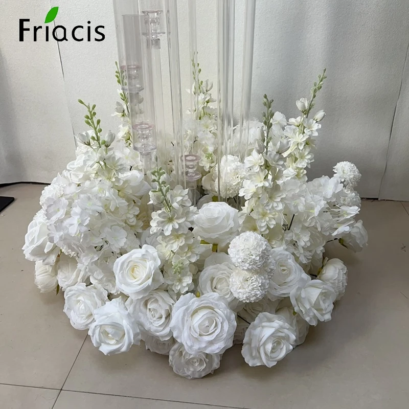 This white flower centerpiece adds elegance to any special event. The flower ball design creates a full and luxurious appearance. Beautiful hyacinth and rose details enhance the floral arrangement. It is perfect for weddings, receptions, and formal celebrations. The elegant white color matches many decor themes. Use it as a table centerpiece for dining or gift tables. It also works well as backdrop decor for event displays. Reusable design makes it practical for multiple occasions. Lightweight construction allows easy placement and setup. This floral decoration brings beauty and sophistication to any venue.